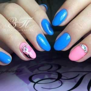 Форма овал может реализовать самые разнообразные задумки мастера. Работа начинается с покрытия, и тут выбор велик – на овал хорошо ложатся гель-лаки, шеллак и любые декоративные покрытия. Плавные грани приветствуются, они раскрывают образ дамы.