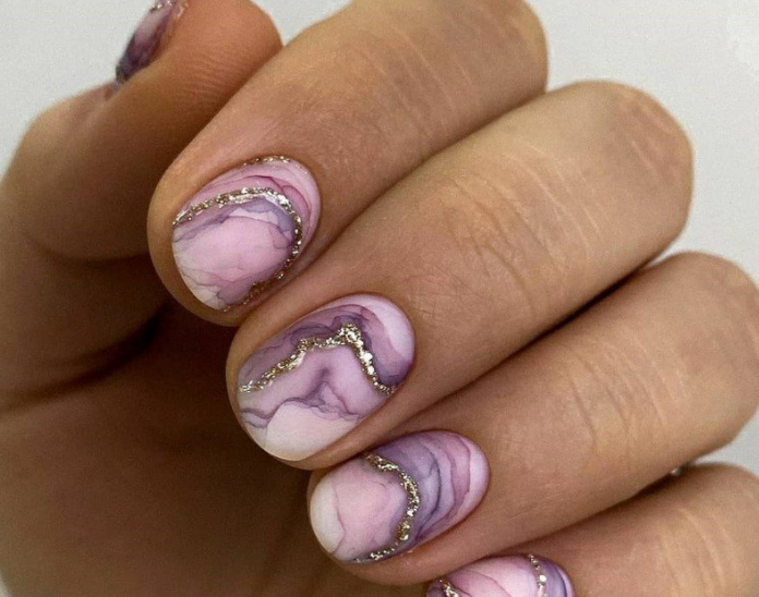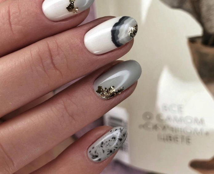 Для более раскрепощенного и рокового образа можно использовать сочетание золота с темно-бордовой или сливовой основой. А вот что касается хитового в этом сезоне мраморного маникюра, явным фаворитом станет имитация натурального камня, которая будет выглядеть максимально реалистично.