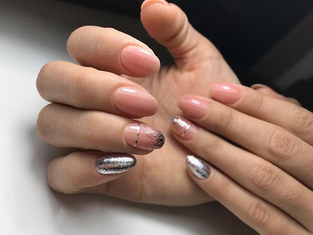 Но подобное решение хорошо на ярких лаках. Нюдовые оттенки, как вы помните, требуют небольшого акцента. Однако, есть интересное решение – плавное омбре, в нюдовых оттенках с постепенным переходам цвета от самого светлого нюда на одном пальце до самого темного на другом. Такое решение оживит минималистику, но при этом будет выглядеть сдержанно и элегантно.