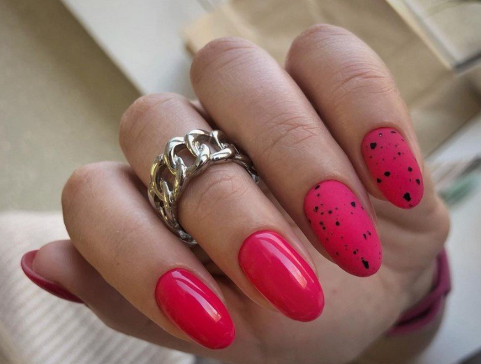 Яркий маникюр представлен огромным разнообразием оттенков. Для летнего дизайна традиционно выбирают неоновые тона, ягодные и фруктовые мотивы, яркую абстракцию.