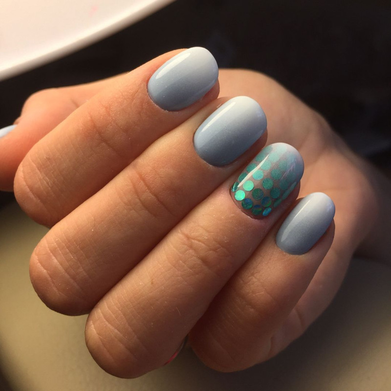 Возьмите на заметку нежно-голубой оттенок. Его можно выполнить как в однотонном исполнении, так и с любым дизайном.