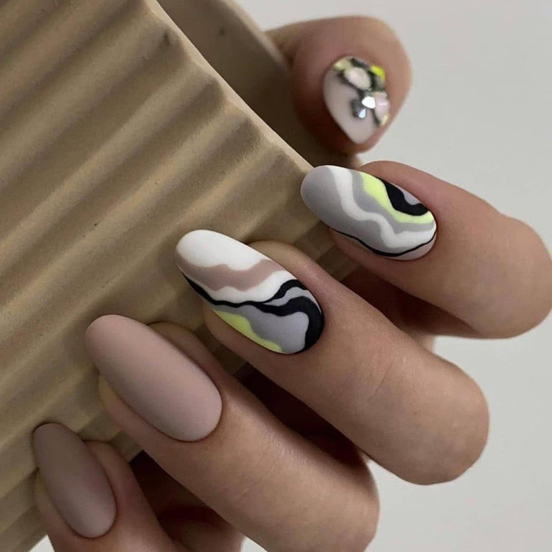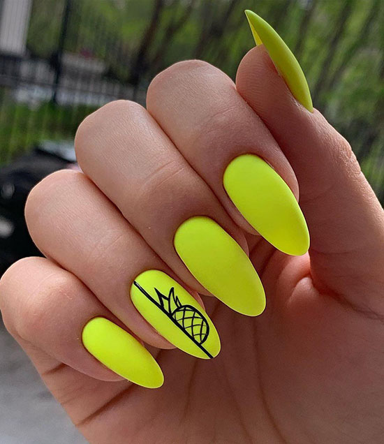 Лаконично и сдержанно будет смотреться матовый маникюр в ярких оттенках и кислотных тонах. Если яркие оттенки надоели, то их всегда можно разбавить графикой, нюдом и блестками.