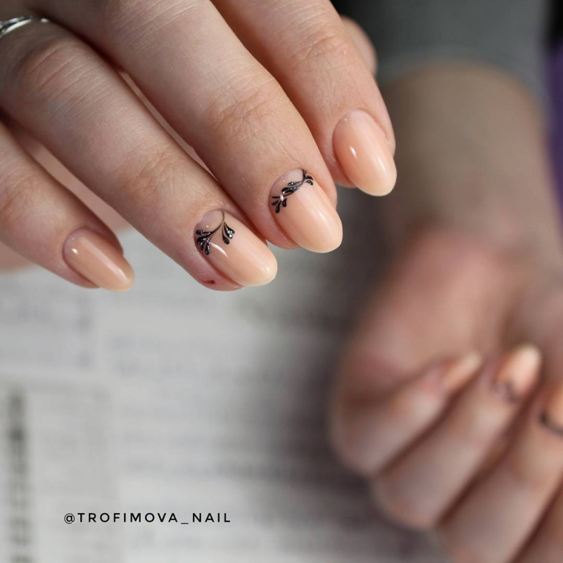 Примечательно, что короткие овальные ногти смотрятся весьма гармонично и естественно, а потому лучшим вариантом дизайна станет маникюр нейтрального оттенка с лаконичным дизайном.