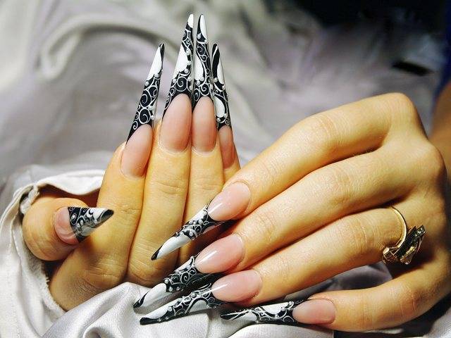 Придание подобной формы ногтям на руках – это целое искусство. Именно поэтому им владеют опытные мастера. Как правило, здесь не обойтись без наращивания. Мастера используют акрил и гель-лак. Однако стоит иметь ввиду, что такой эксцентричный маникюр подходит только для сильных и здоровых ногтей. Ослабленные ногтевые пластины он может повредить.