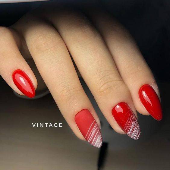 Любители яркого маникюра могут выполнить рисунок с «паутинкой» на сочных оттенках гель-лака. Для красных, розовых, желтых, оранжевых, синих, зеленых покрытий можно использовать черную «паутинку». Сверху ногти можно покрыть матовым финишем, это сделает дизайн еще более стильным.
