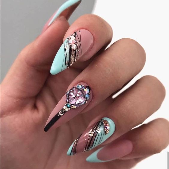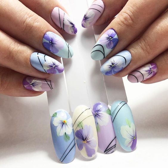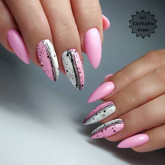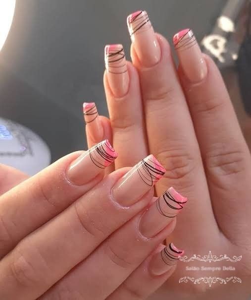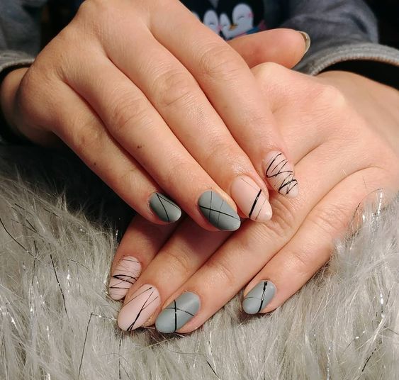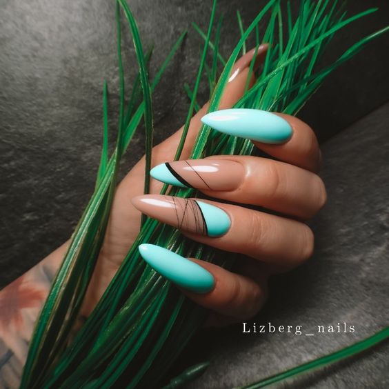 Очень стильно выглядят черные линии на светлых пастельных оттенках, например, мятном, розовом, лиловом или голубом.