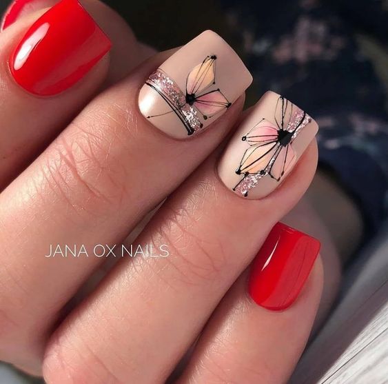 Короткие ногти чаще всего оформляют двухцветным дизайном. Как правило, рисунок накладывается на контрастный фон, чтобы можно было явно выделить его утонченность, а также проявить задуманный рисунок.