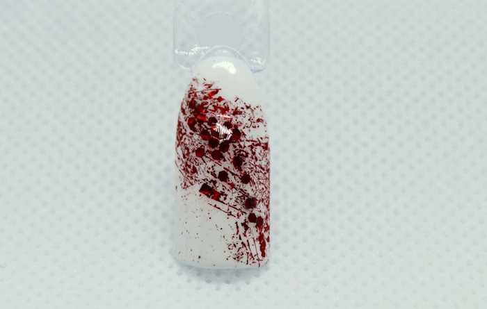 Шаг 2 – Далее берем переводную фольгу, немного мнем ее пальчиками и отпечатываем в виде оттисков.