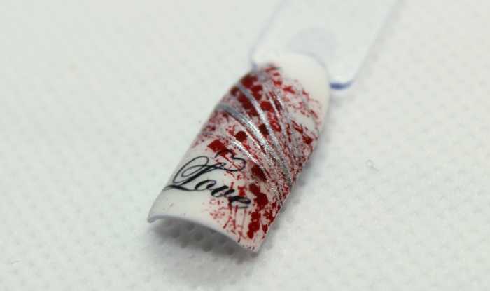 - Посредством дотса или тонкой кисточки нанесите нити специальным лаком.