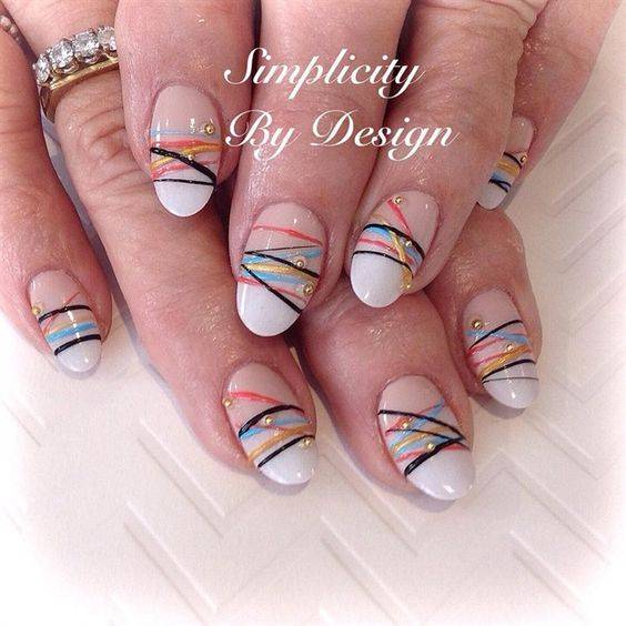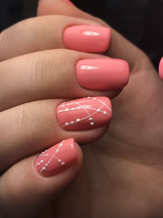 Чаще всего на коротких ногтях рисуют параллельные линии: горизонтальные, вертикальные, полукруглые или диагональные. Но и скрещивание, напоминающее паутину, также распространено.