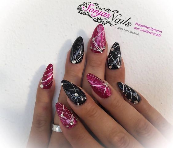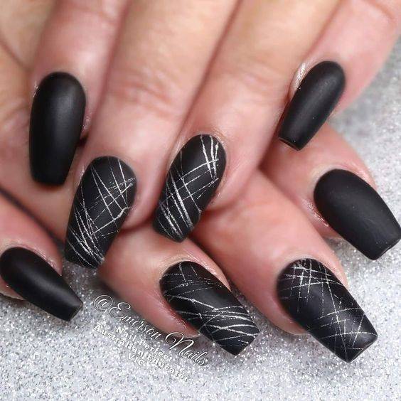 Чёрный цвет ценится за свою глубину и великолепные возможности. Сочетаемость его с паутинкой поразительна. Но в идеале — это белая или серебристая паутинка. Можно добавить совсем немного элементов для ощущения завершённости. От других цветов чёрный отличается истинным благородством.