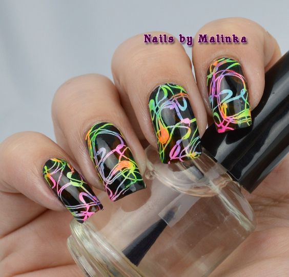 За основу вместо чёрного можно взять оранжевый, жёлтый и любой другой лак яркого цвета.