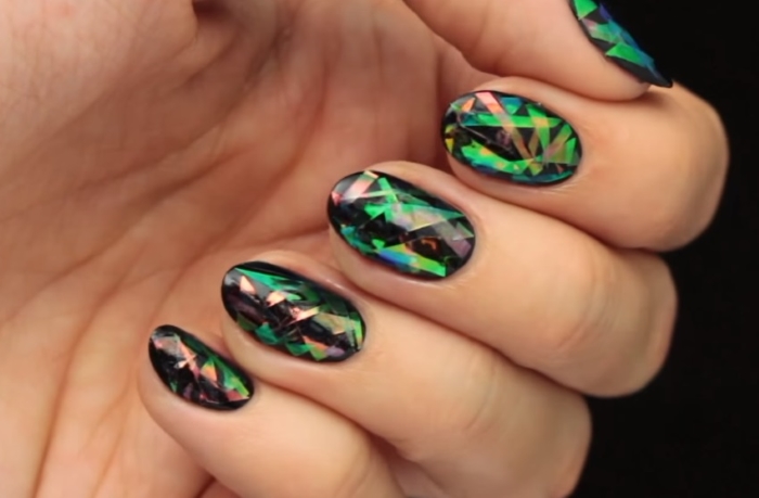Любая фольга — хороший способ украсить ногти, особенно если включить фантазию и нанести какой-нибудь необычный рисунок.