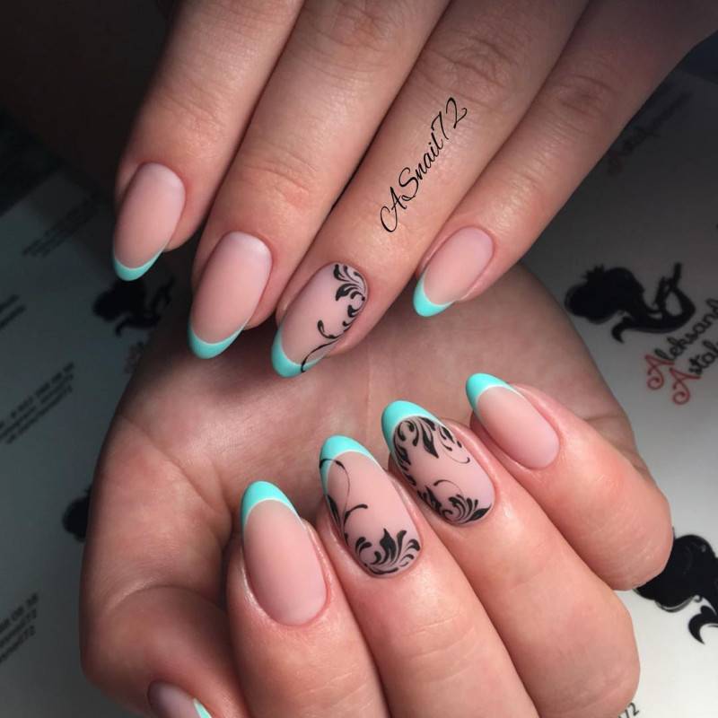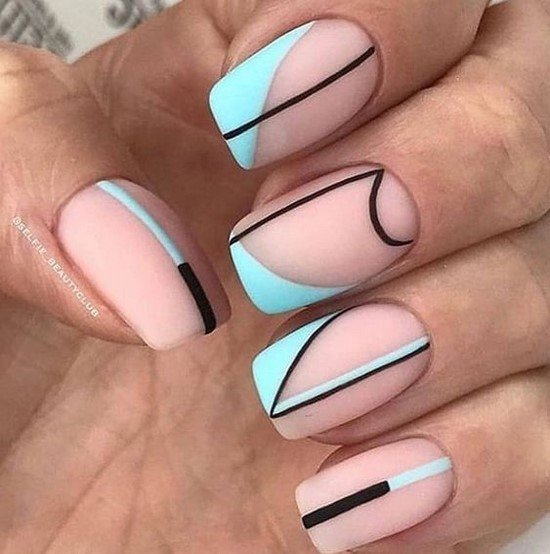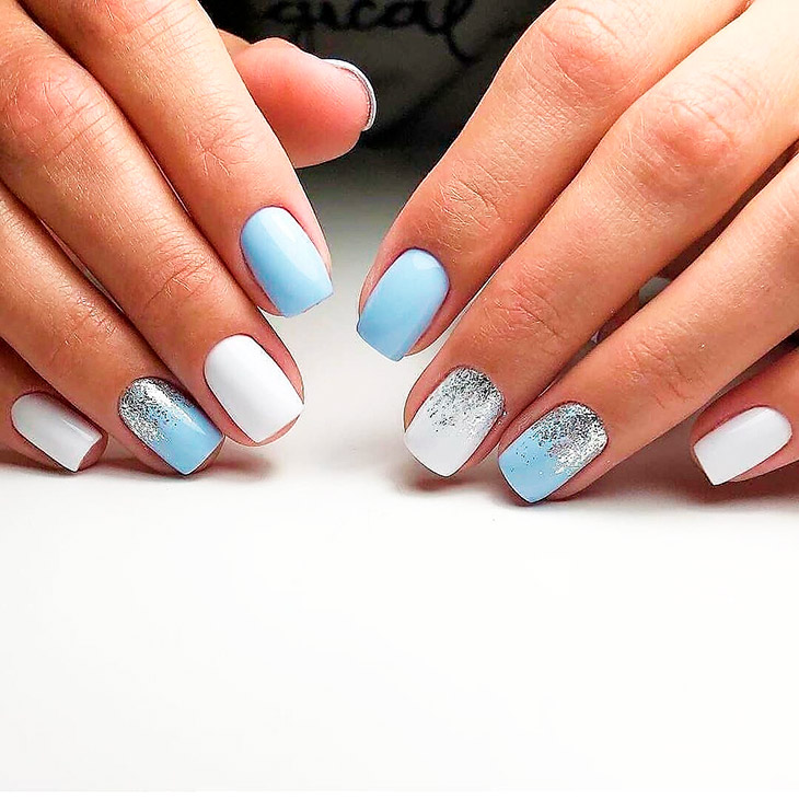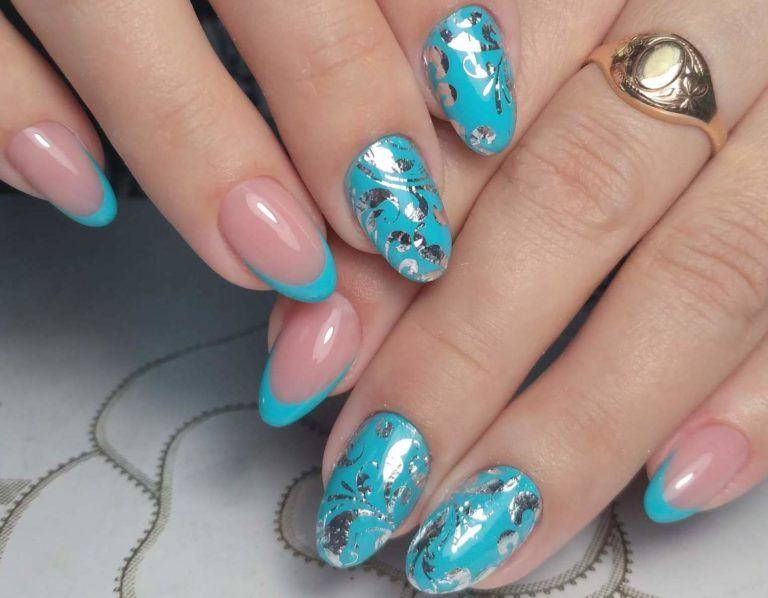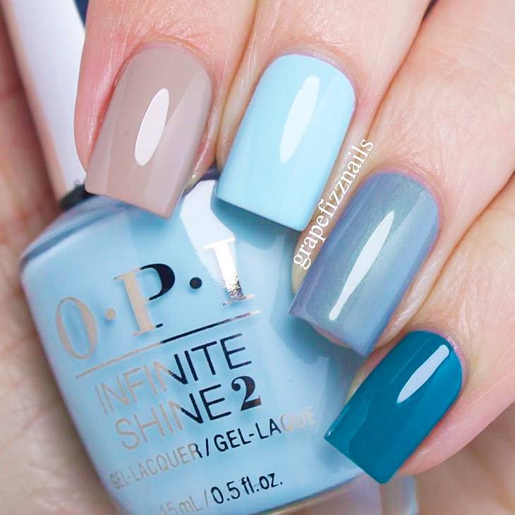 Голубой маникюр в сочетании других оттенков палитры