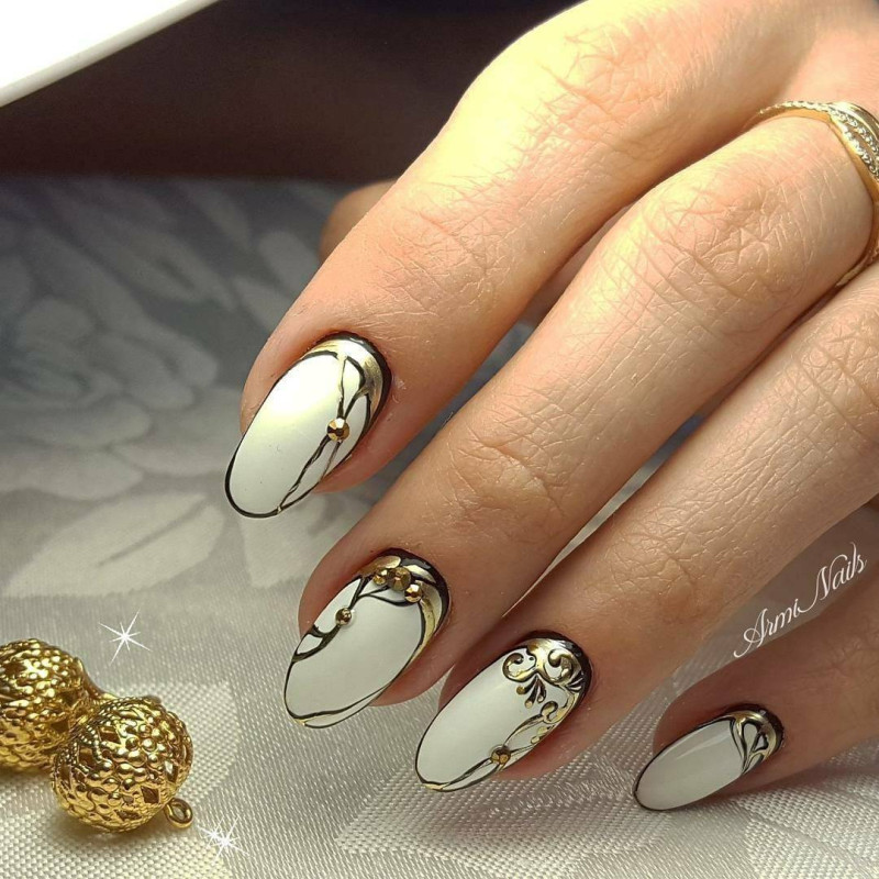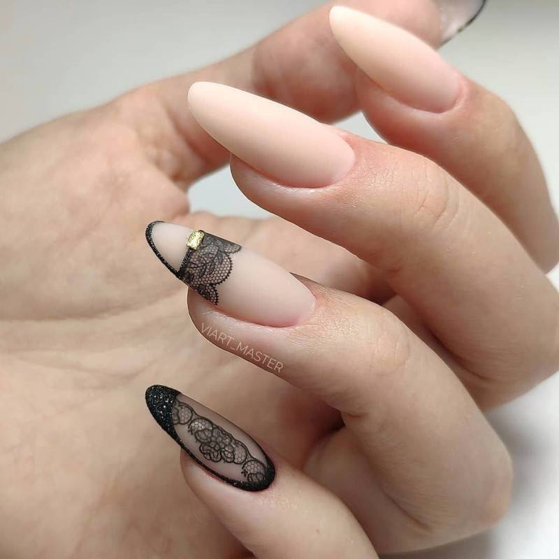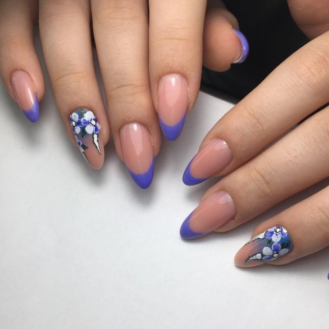 Маникюр на миндалевидных ногтях