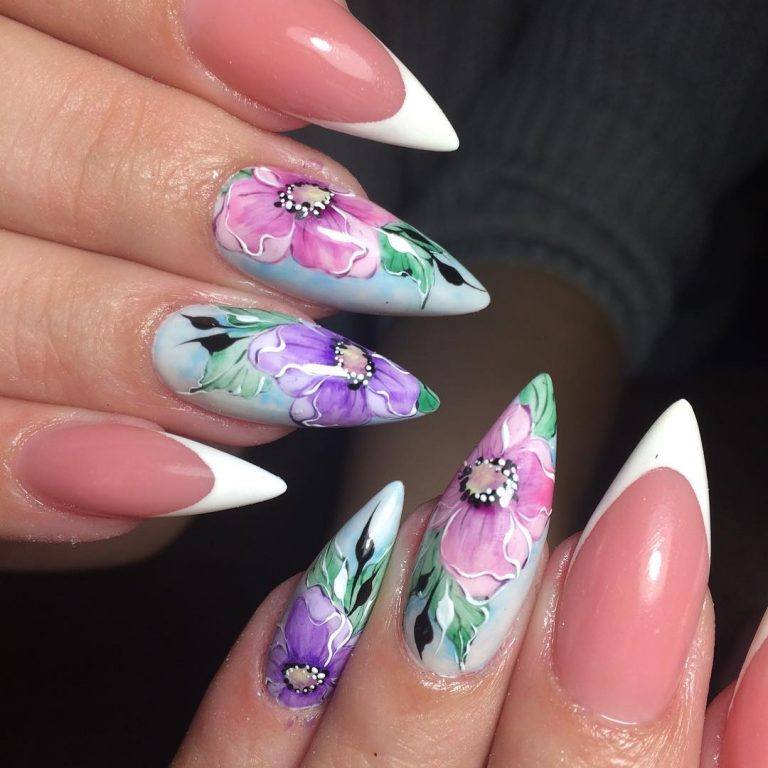 Ведь цветочный рисунок получается нежным, слегка размытым. Более реалистичного эффекта можно достичь, если нанести дизайн вручную. Но учитывайте, что для этого необходимы художественные способности и опыт в нейл-арте