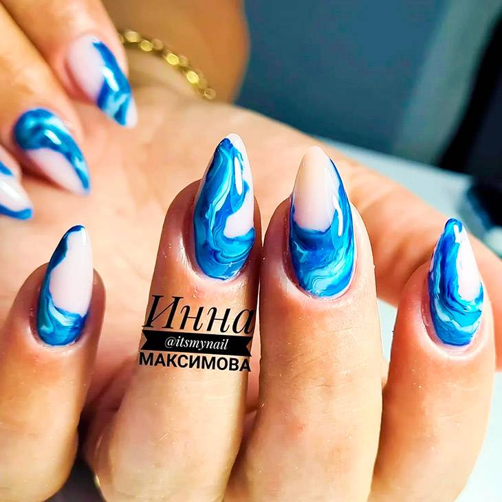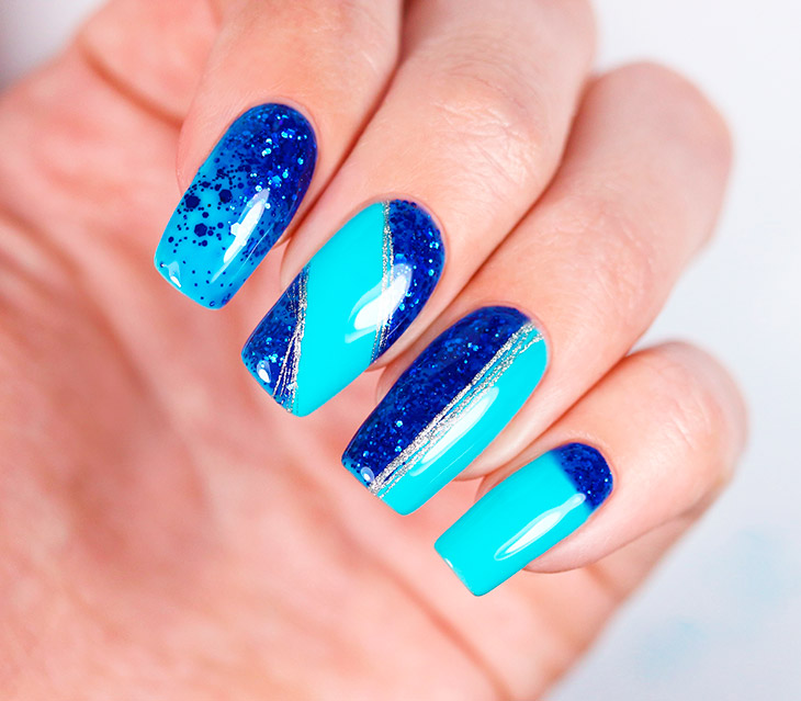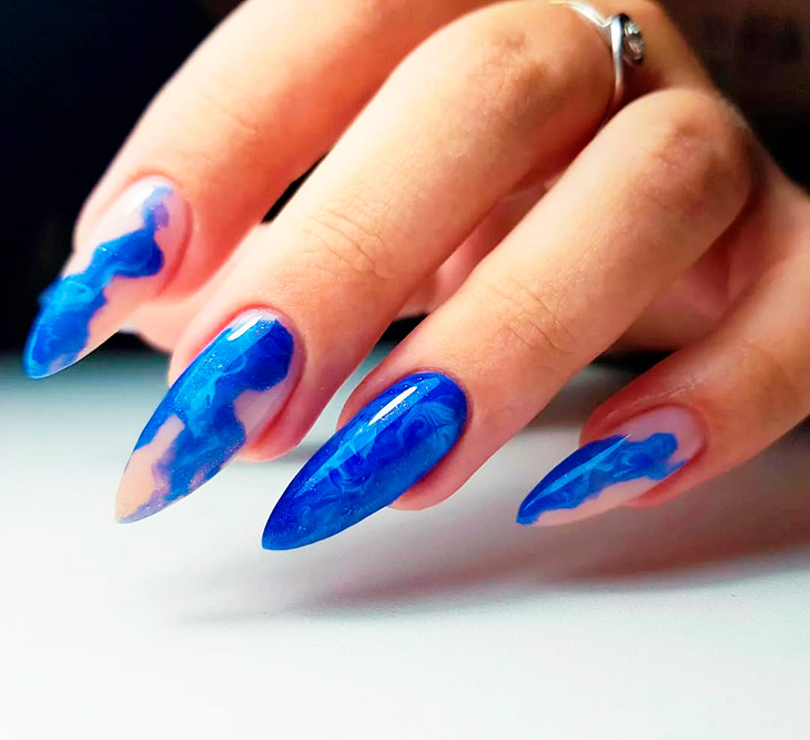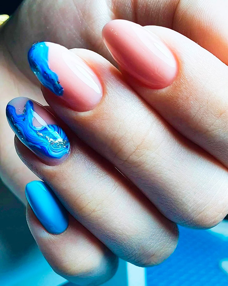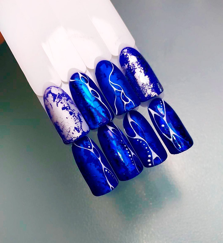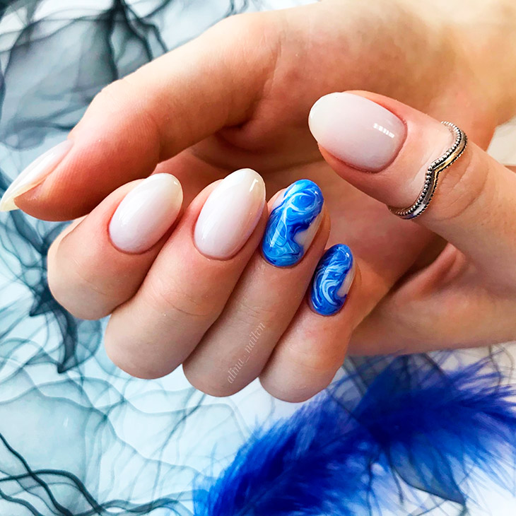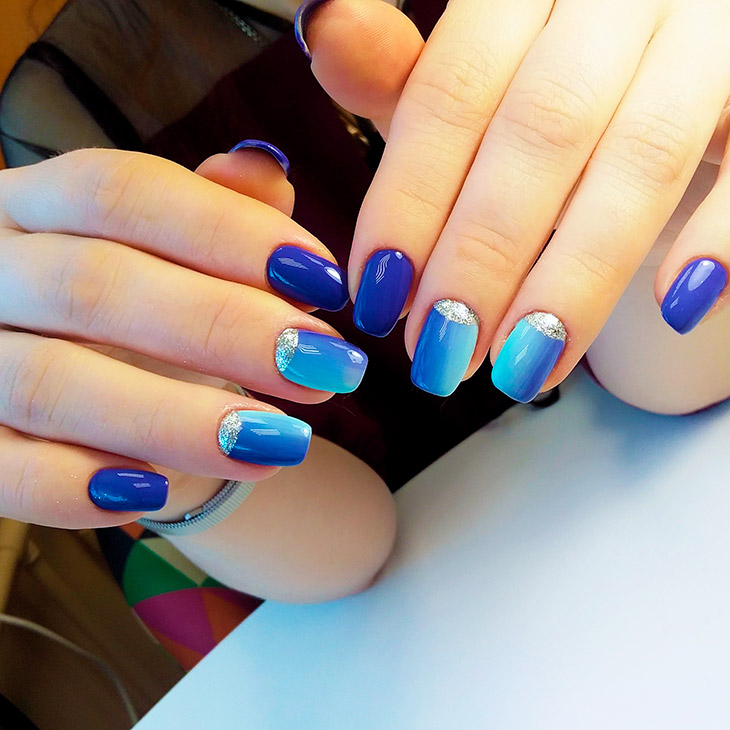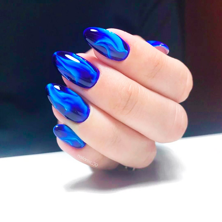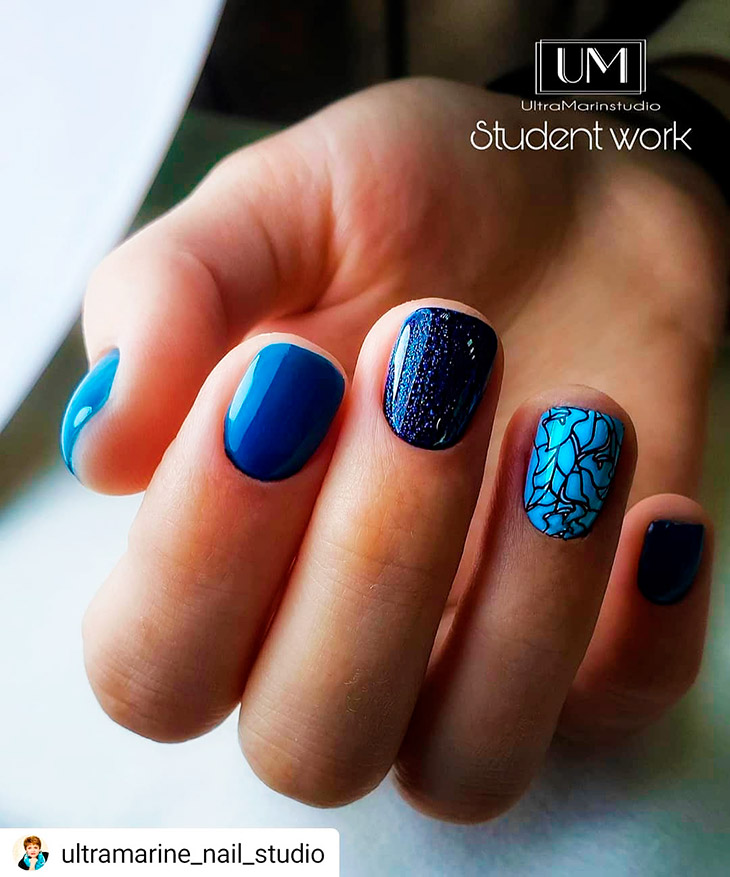 Каждый оттенок синего несёт определенное настроение, подходит под случай и тут важна даже форма ногтей. Холодные тона не стоит смешивать с тёплыми, вместе они создадут диссонанс.