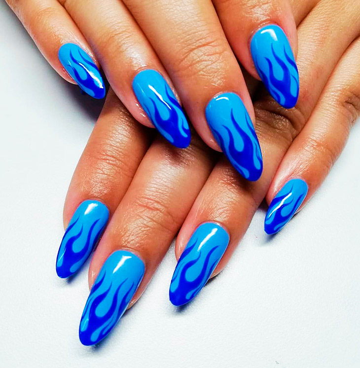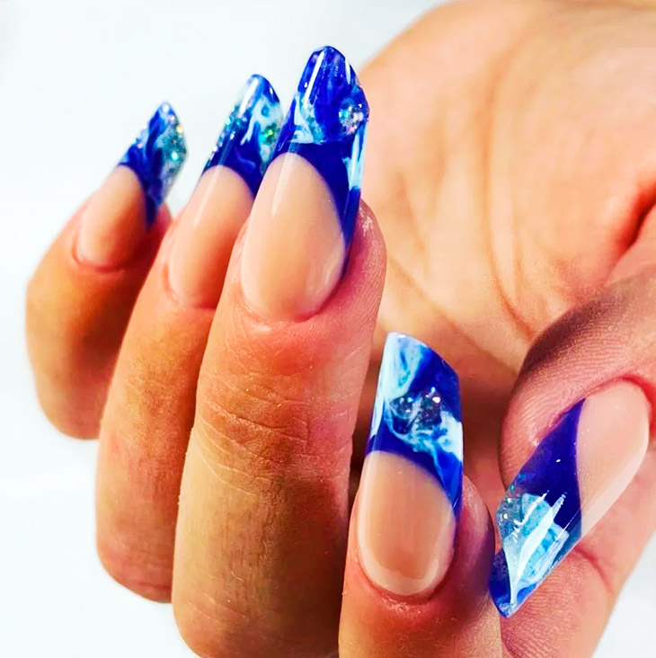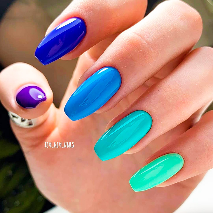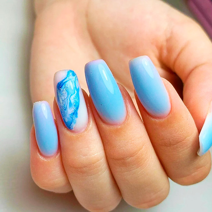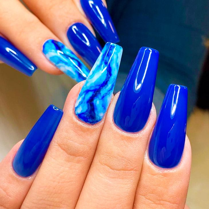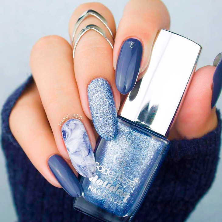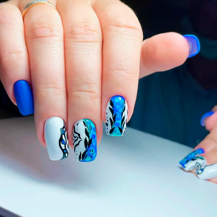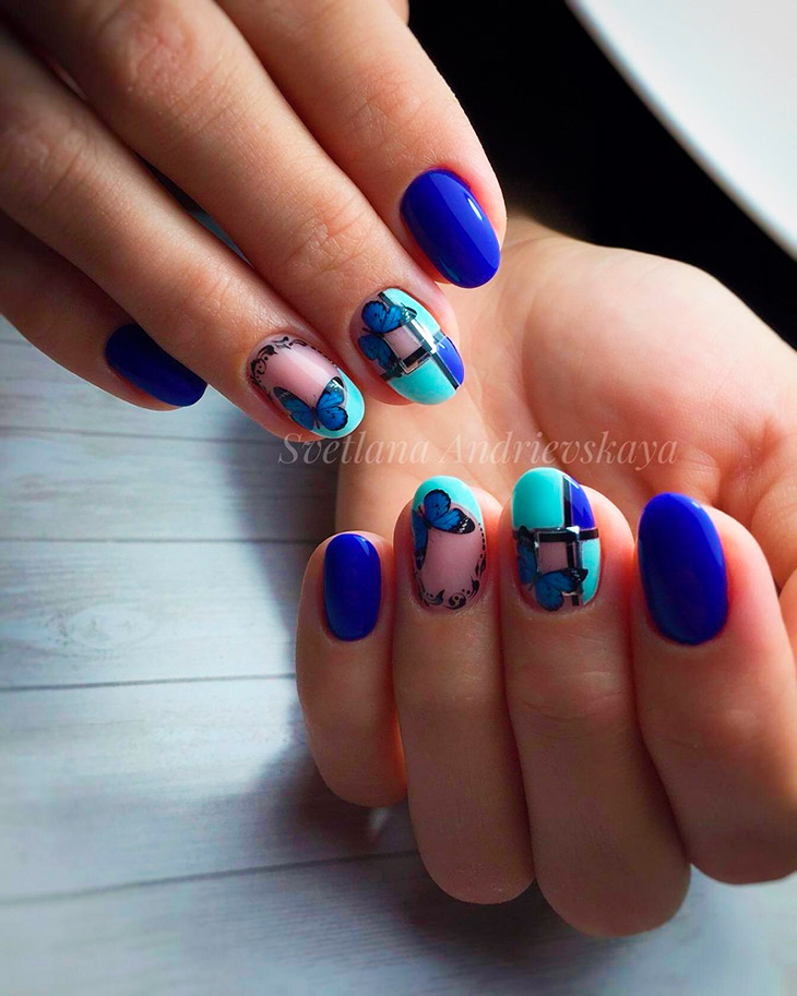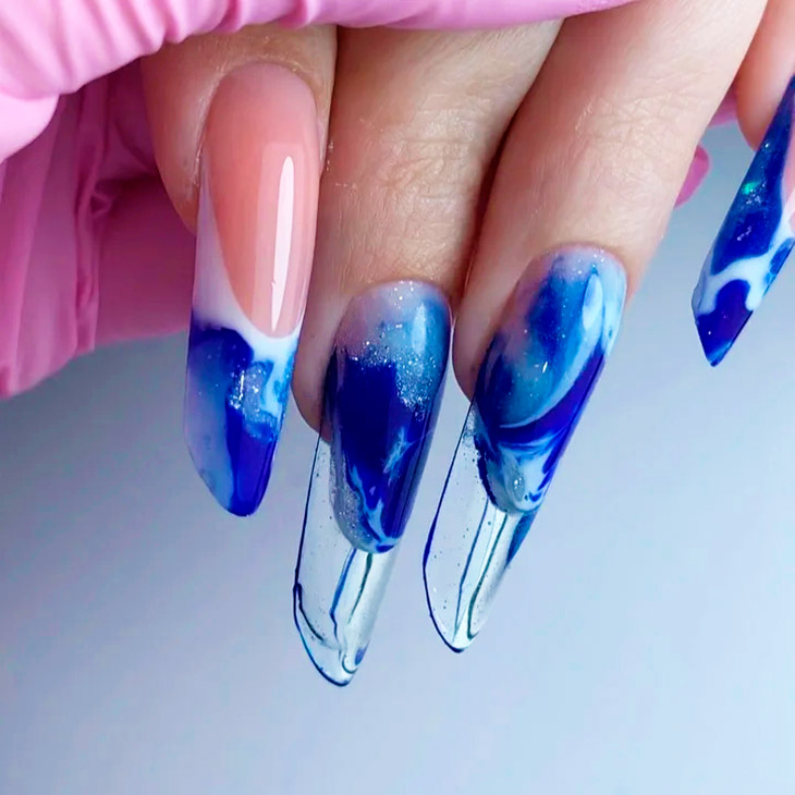 Каждый оттенок синего несёт определенное настроение, подходит под случай и тут важна даже форма ногтей. Холодные тона не стоит смешивать с тёплыми, вместе они создадут диссонанс.