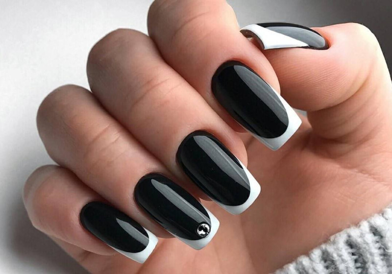 В отличие от популярного белого, синий цвет не является очень простым, поэтому сочетать его с другими оттенками нужно осторожно. Стильно и изысканно выглядит черно-синий маникюр, но для него нужно выбирать более светлые оттенки синего, близкого с голубому