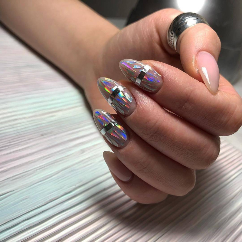 При помощи зеркального глиттера и втирки мастера нейл-арта создают шикарное металлизированное покрытие, которое актуально в 2019 году. Рассмотрим варианты применения этого исполнения: