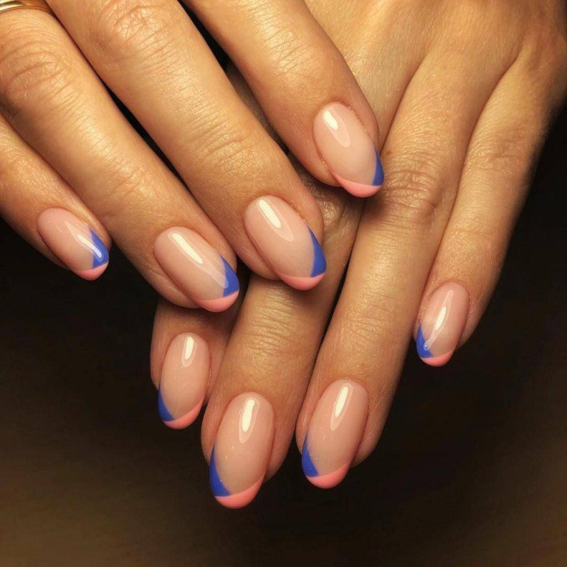 Синий цвет будет отлично смотреться в треугольном френче на квадратных ногтях. Используйте насыщенные синие оттенки, чтобы столь интересный вариант френча был хорошо заметен на ноготках.