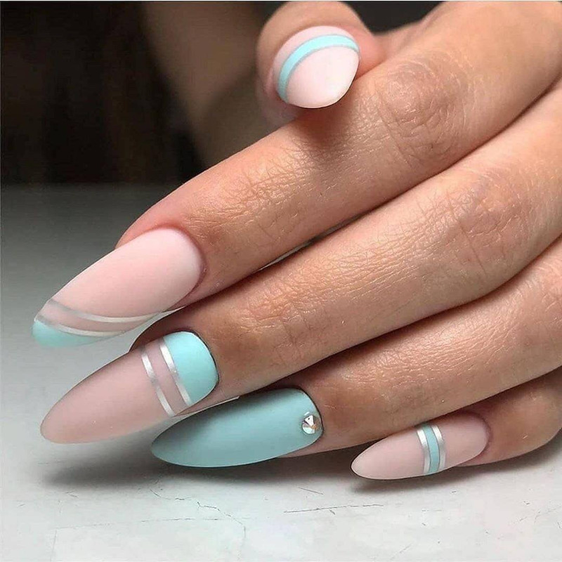 Сочетайте небесный и нежный голубой на ногтях с пастельным розовым, лимонным, мятным, салатовым.