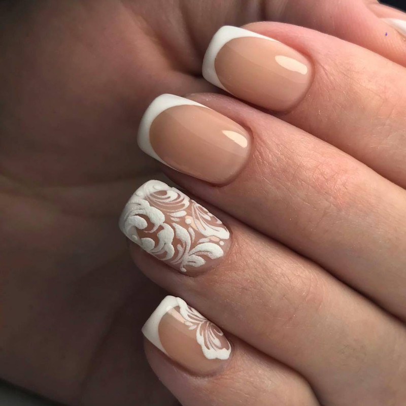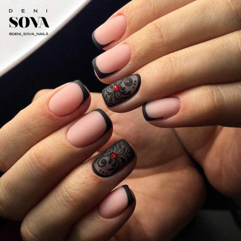 Чем контрастнее получается сочетание при выполнении нюдового маникюра с дизайном, тем лучше результат. Единственное ограничение – умеренность.