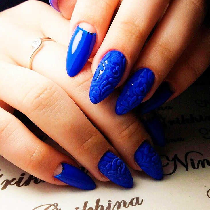На ногтях какой формы лучше всего смотрится синий маникюр
