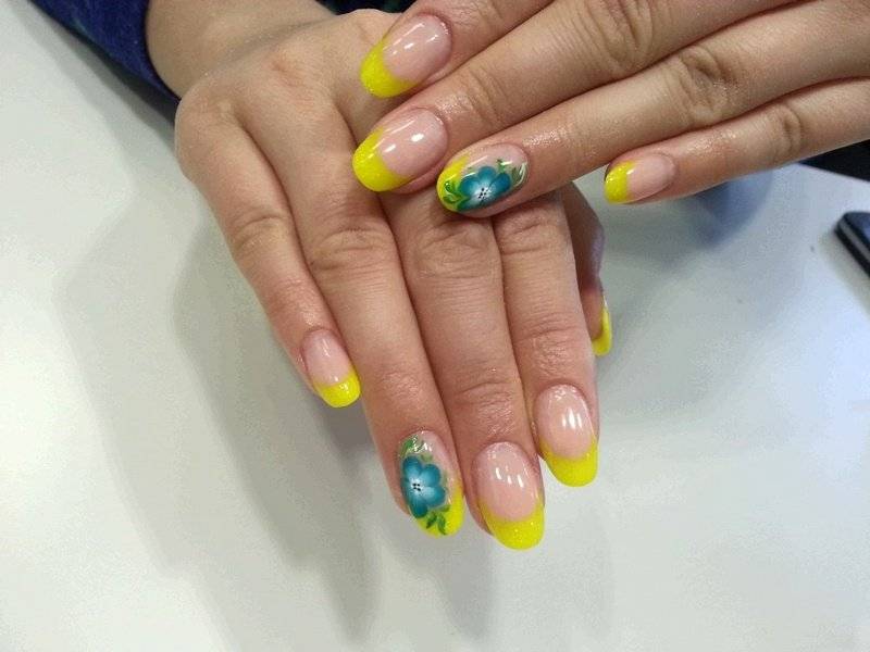 Френч в желтом цвете выглядит невероятно ярко и привлекательно. Дизайн визуально смотрится интересно и не банально. Существует несколько способов декора ногтей желтым френчем: