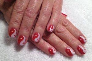 Как видите, дизайн может быть выполнен в любом цвете – используйте синюю, розовую, красную гамму, создавайте плавные переходы цветов, добавляйте другие символы и стразы. При этом совсем необязательно наносить рисунок на каждый ноготь.