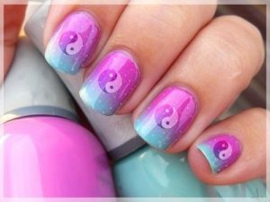 - Уместна в маникюре инь-янь и такая техника покрытия гель-лаком, как градиент. Она представляет собой мягкий переход от одного тона к другому. Нанесенный данным способом рисунок инь-янь выглядит особенно привлекательным и элегантным.