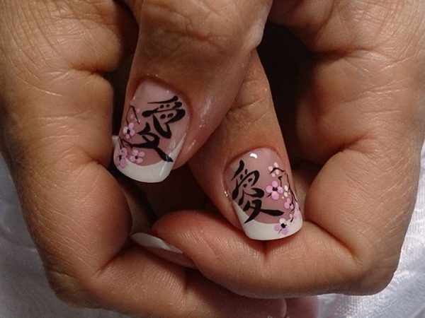 Иероглифы способны гармонично сочетаться с разными разновидностями дизайна ногтей. Для эффектного и элегантного внешнего вида пальцев можно воспользоваться уже имеющимися идеями или попробовать поэкспериментировать.