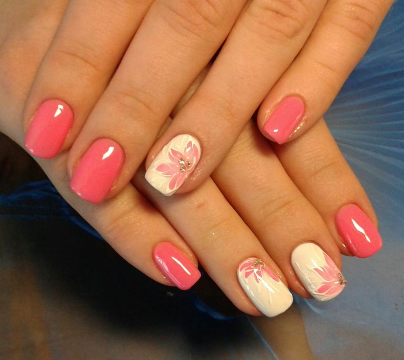 Что касается актуальных рисунков на ногтях, обилие стразов или других объемных элементов ушли в прошлое. Скромные ажурные узоры, цветочные композиции, «битое стекло», мозаика и геометрические абстракции – вот что нужно в текущем году.