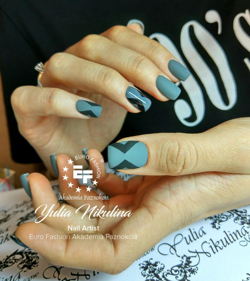 Альтернативным вариантом для классического черного маникюра станет угольно-серый тон, при этом допустимо разнообразие фактур.