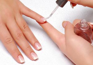 Мазки наносятся аккуратно при помощи тонкой кисти вдоль свободного края ногтевой пластины. Если будут допущены ошибки, их легко исправить кистью, предварительно смоченной в дезинфекторе.