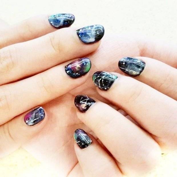 Если у вас нарощенные ногти, вы можете попробовать дизайн «битое стекло», который сейчас пользуется огромной популярностью.