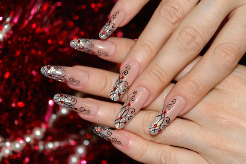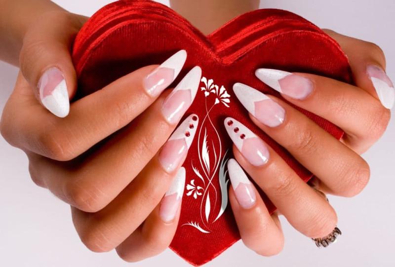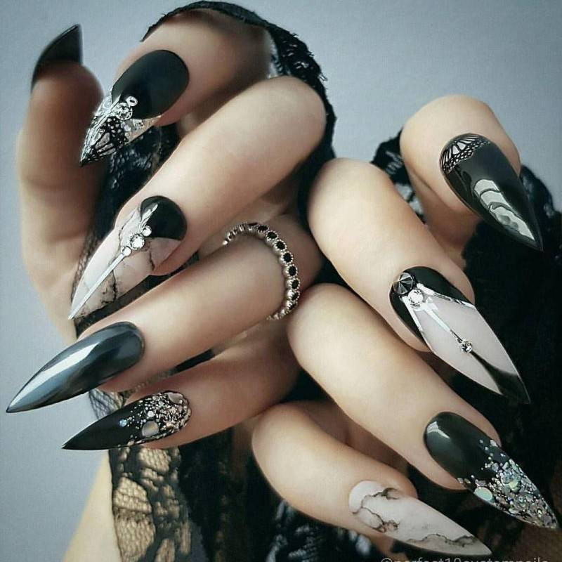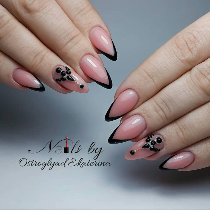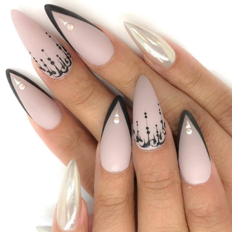Оставляя в стороне «великую классику», остроконечные гелевые или натуральные ногти очень хорошо поддаются декорированию и украшению особым и эксцентричным нейл-артом, который несколько смягчает конечный эффект, осветляя маникюр.