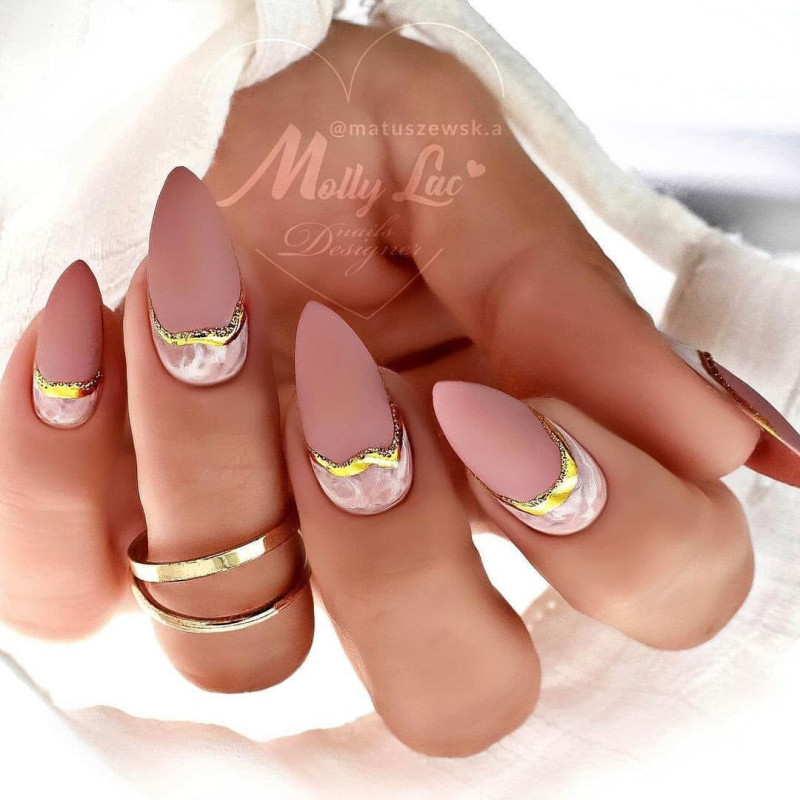 Например, одна идея может состоять в том, чтобы сделать дизайн типа Swirl Nails на заостренных ногтях: на самом деле, их заостренная и даже слегка угловатая форма хорошо поддается смягчению извилистыми линиями этого маникюра.