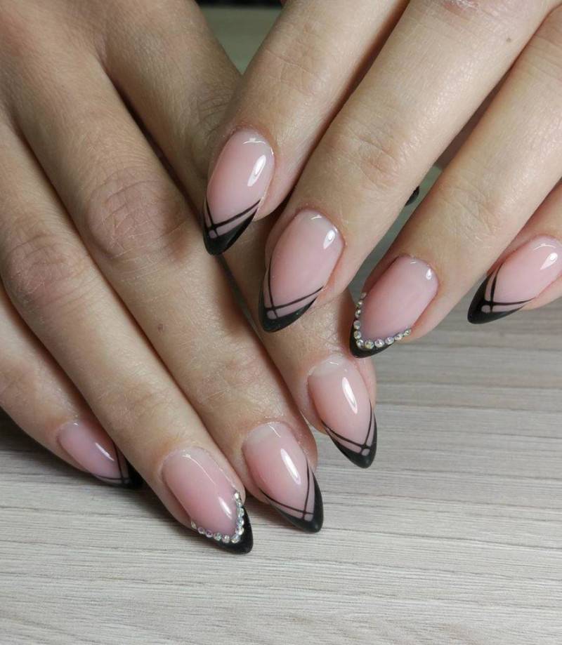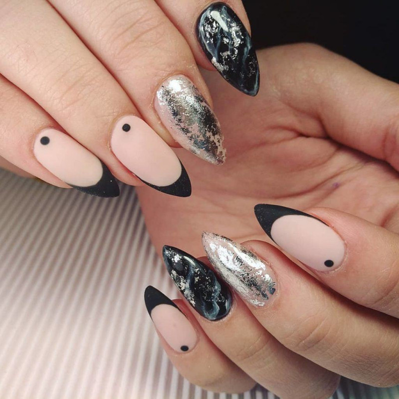 ТЕМНЫЙ МАНИКЮР НА ОСТРЫЕ НОГТИ