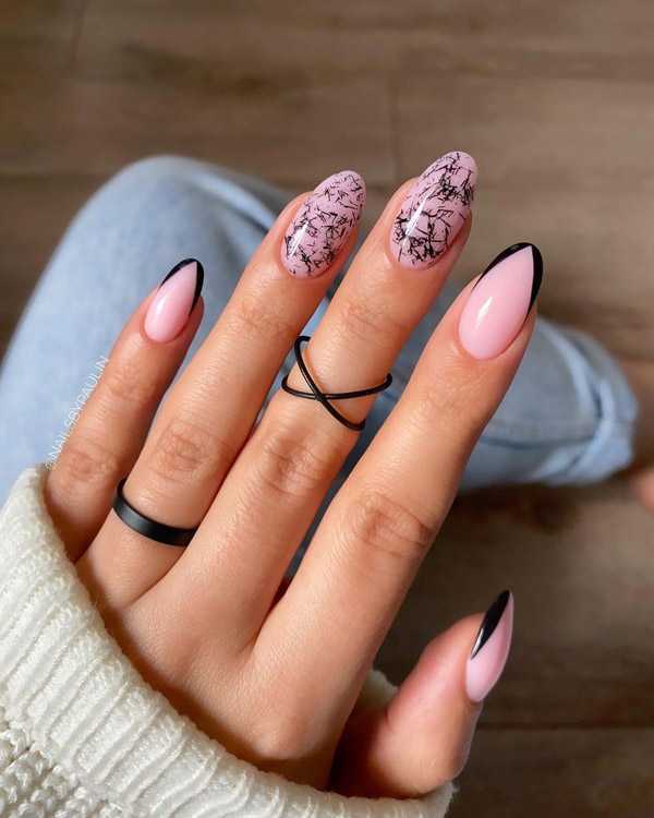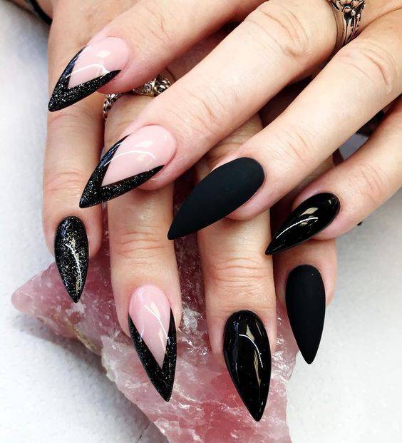 ТЕМНЫЙ МАНИКЮР НА ОСТРЫЕ НОГТИ