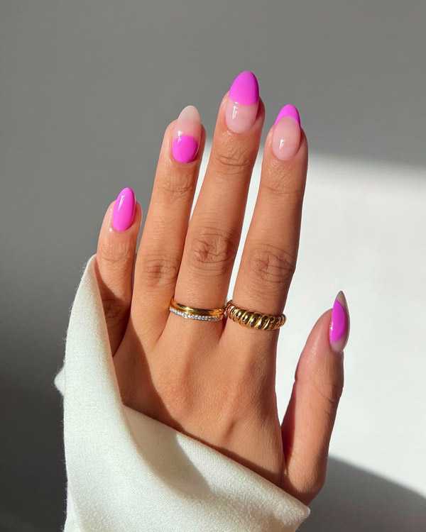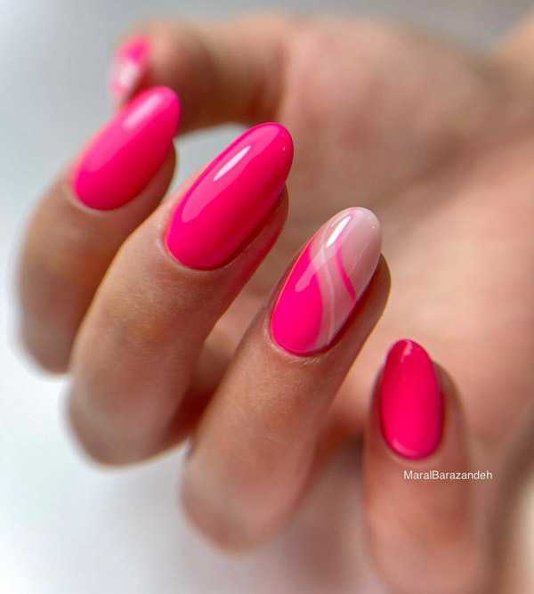 Яркий дизайн ноготков в модном оттенке фуксия.
