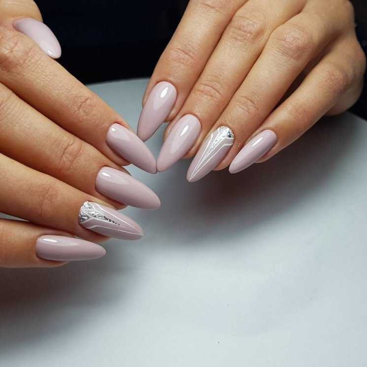 Повседневный маникюр на длинные острые ногти в стиле nud