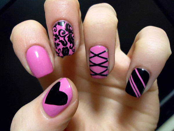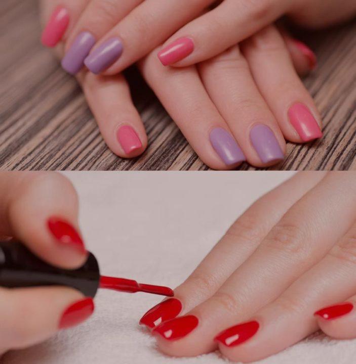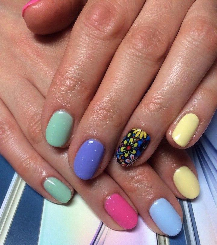 Самым элементарным решением, может стать лак разных цветов. Можно накрасить пальчики разными цветами или выбрать другой цвет для одного ноготка.