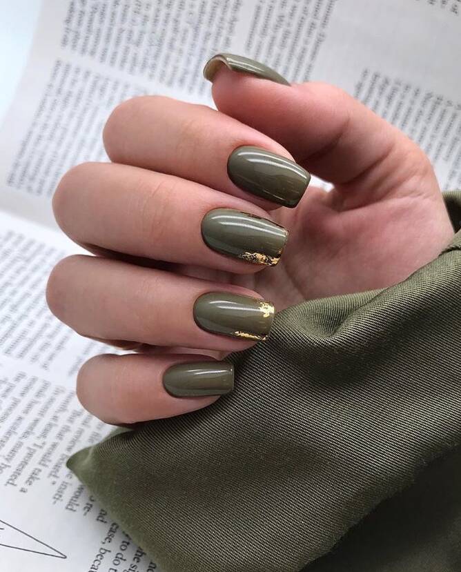 Маникюр с фольгой на коротких ногтях стал трендовым относительно недавно. Чаще всего он выглядит как покрытие с добавлением золота или серебра. Смотрится необычно и богато.
