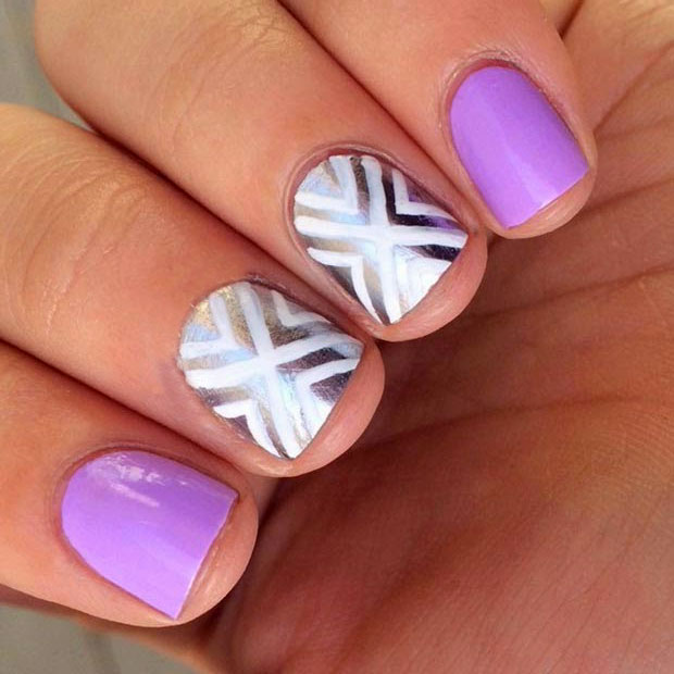 Украсив короткие ноготки блестящим геометрическим рисунком или фольгой, вы станете обладательницей трендового в сезоне 2019/2020 маникюра.