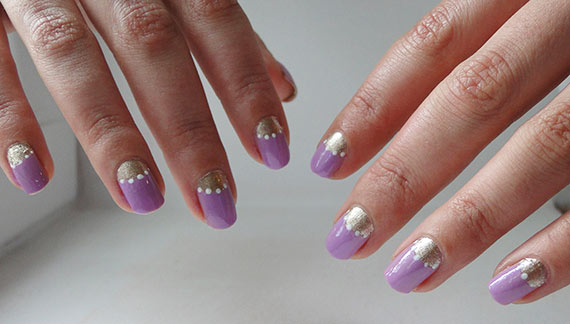 Как и в предыдущих случаях, первым делом делаем маникюр, наносим базовый слой лака и ждем, пока он высохнет. Затем делаем точки с помощью иглы и, плавно передвигаясь от одной к другой, формируем заранее продуманный узор. Когда с рисованием покончено, даем лаку высохнуть, и покрываем ногти топом.