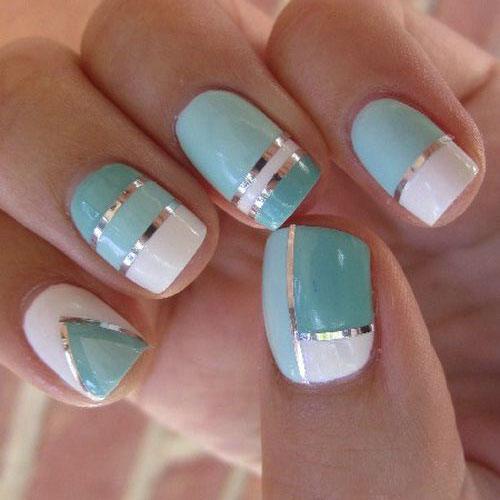 При помощи их получаются очень интересные решения графических рисунков. Необходимо нанести основной цвет лака, наклеить полосочки в том порядке и направлений который вы выбрали, нанести еще один цвет лака, после чего отклеить полоски.