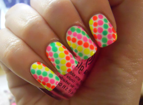 Для данного маникюра могут подойти все цвета радуги, можно сделать глянцевые точки на матовом лаке или цветные на нейтральном. Здесь все будет, зависит от вашего настроения и образа.