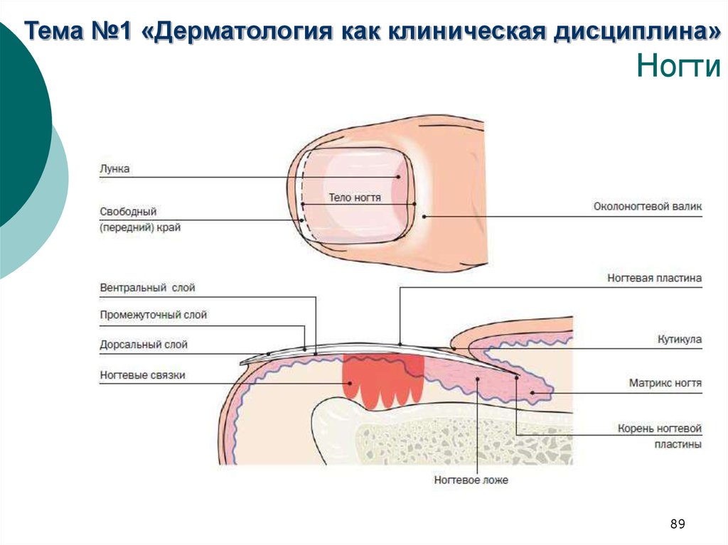 Ваш ноготь состоит из разных частей. Ногтевая пластина — самая заметная часть ногтя. Ногтевое ложе поддерживает твердую часть ногтя по мере его роста. Включает гипонихий и ониходерму. Это слои ткани, которые предотвращают заражение патогенными микроорганизмами кожи под ногтевой пластиной.