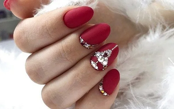 Красный маникюр со стразами 2023